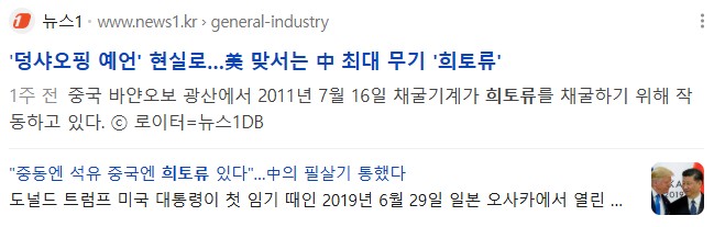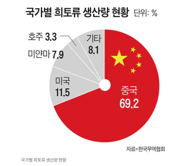 한국이 수입하는 희토류의 80% 이상이 중국 의존입니다.