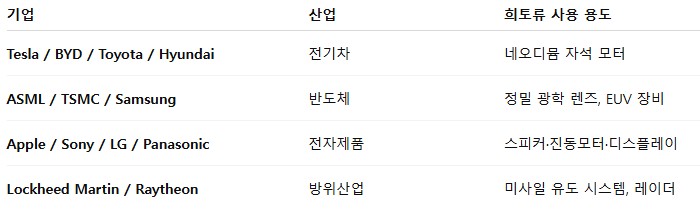 위의 표 속 기업들을 보면 Tesla, Apple, ASML, Lockheed Martin. 이들은 더 이상 단순한 제조사가 아닙니다. 최근 몇 년간 이 기업들이 직접 광산 투자, 자원 계약,