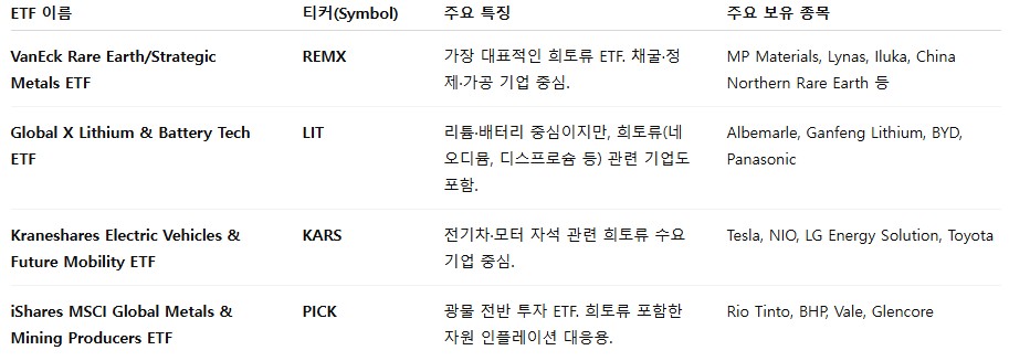 희토류를 담고 있는 몇 가지 ETF가 있습니다.