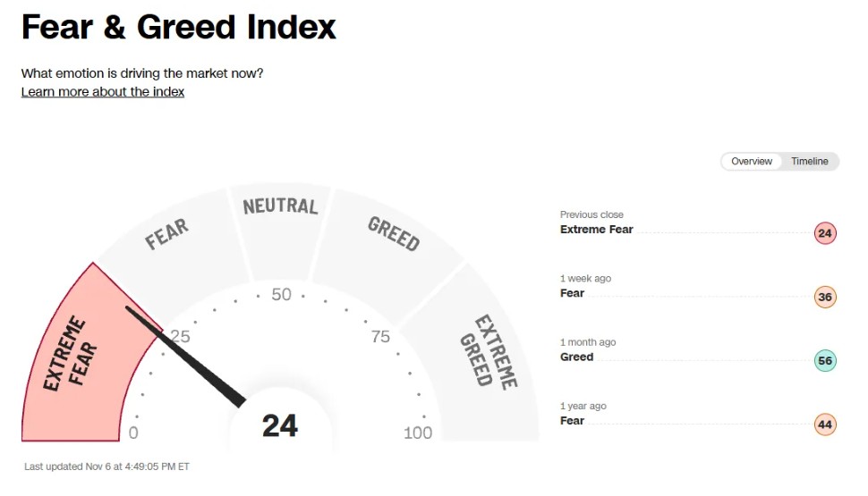 CNN Fear & Greed Index: 24 ๊ทน๋จ์ ๊ณตํฌ