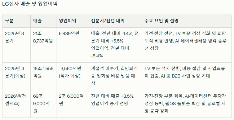 โป LG 3์ฌ ์ค์ , 2025~2026 ์ ๋ง ์์ฅ ์ปจ์ผ์์ค ๋ฐ ์ต๊ทผ ์ค์ ๋ฐํ ๊ธฐ์ค ์ถ์ ์น