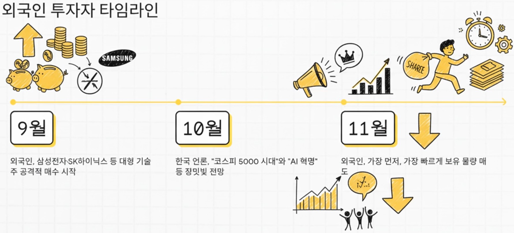 외국인은 9월부터 가장 빠르게 삼성전자·SK하이닉스를 매수했던 주체였습니다.