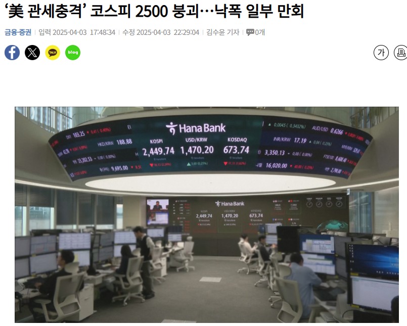 1. 코스피 2025년 4월 3일 2500 붕괴