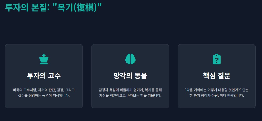 결국, 바둑의 고수가 복기에서 승부를 결정짓듯, 투자의 고수는 자본시장의 복기에서 실력을 결정합니다. |