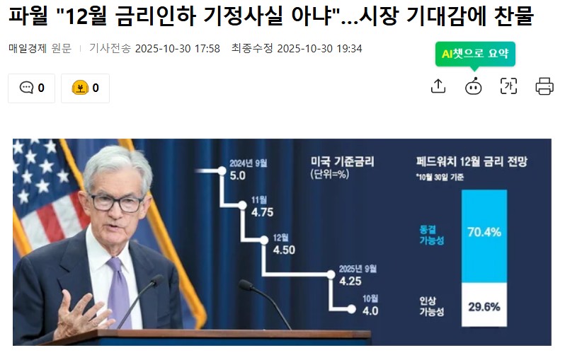 AI 버블 논란 파월 의장의 금리 인하 중단 시사 성장주들의 급락 네오·클라우드 관련주 일부는