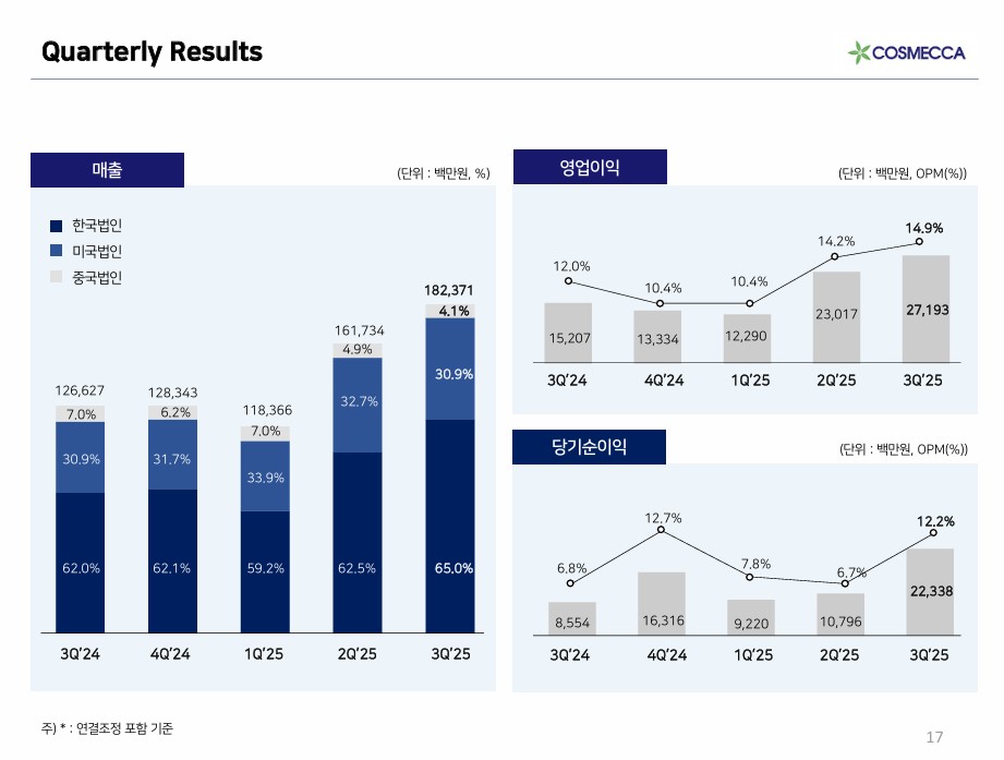 ■ 아래 코스메카코리아 3분실적 입니다.