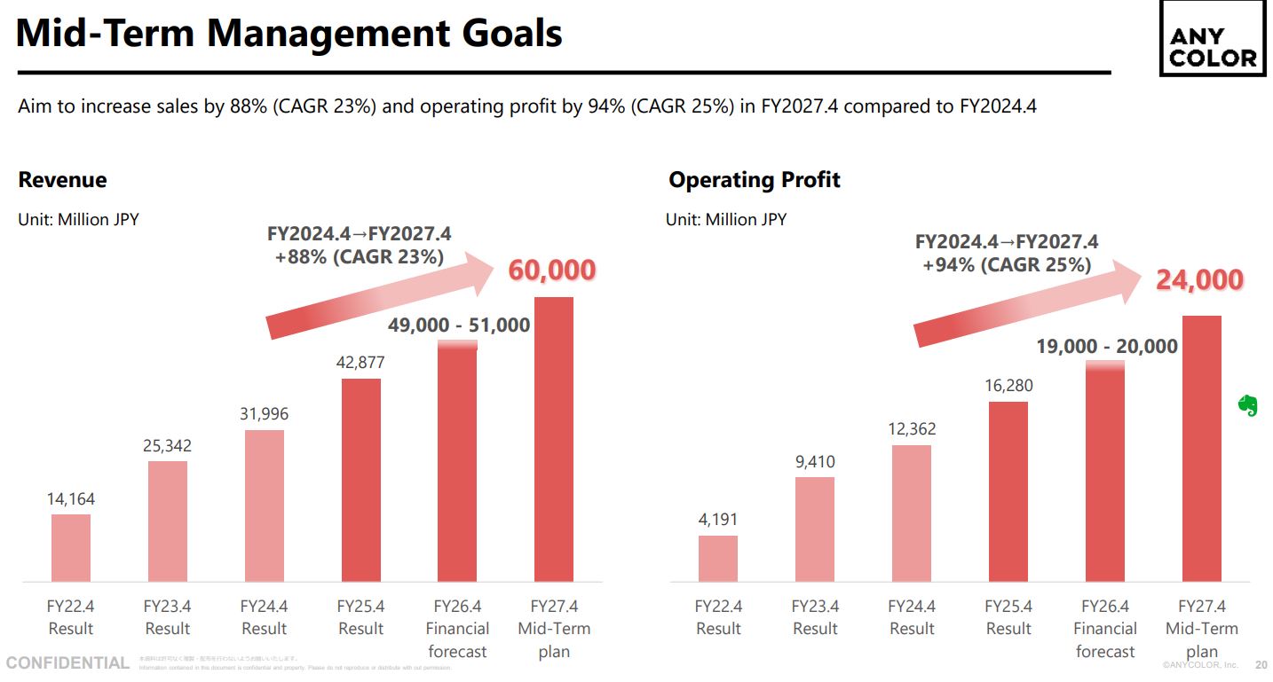 니지산지는 애니컬러가 운영하는 또 다른 주요 글로벌 VTuber 기획사입니다. 니지산지(일본어)와 니지산지 EN(영어) 두 주요 지부에 걸쳐 160명 이상의 VTuber를 관리하며 더 큰 규모의 VTuber 명단을 보유하고 있습니다. 2023년까지 니지산지 소속 VTuber들은 총 6천만 명 이상의 구독자를 확보했으며, 애니컬러는 2025년 회계연도에 429억 엔의 매출을 보고하며 전년 대비 34%의 강력한 증가를 나타냈습니다.