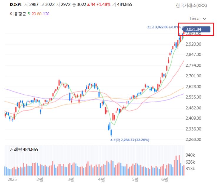 - 코스피 3000선 돌파! 3년 5개월 만에 심리적 저항선 뚫고 새로운 국면 진입